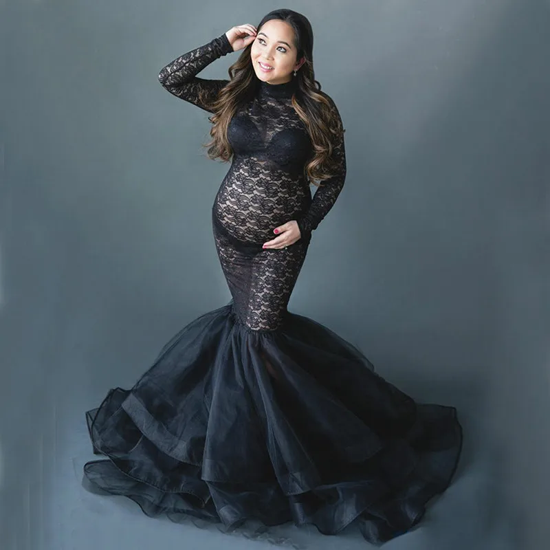 Black Lace Maternity Dress For Photo Shoot Pregnant Women Long Sleeve Splicing Turtleneck Photography Dresses Pregnancy Dress Aliexpress